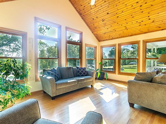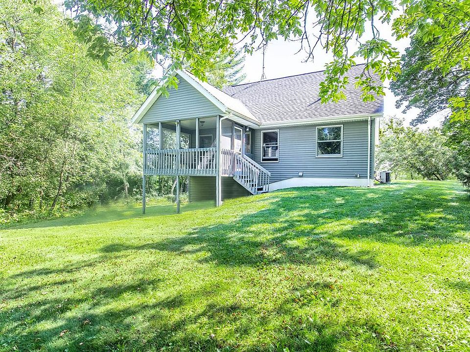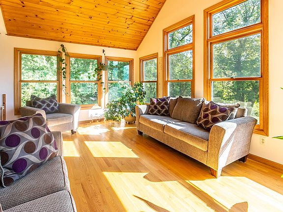 This is the perfect retreat home on over an acre of land with 145' of river frontage where privacy abounds and wildlife roams. This custom home features oak floors and trim, true knotty pine vaulted ceilings, a sun-drenched sitting room off of the kitchen, a spacious family room with sliding doors to the screened in porch, a partially finished lower level with a half bath, 2 car tandem garage built under the home and a private backyard with Black Raspberries, apple, cherry, mulberry and morel mushrooms for your perusal. With winter just around the corner, the home is just minutes from the Wilmot Ski Area.