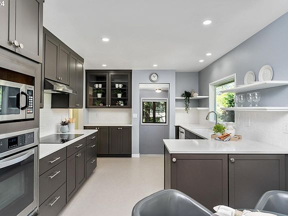 Midcentury daylite ranch on gorgeous, nearly half acre lot on quiet cul-de-sac in desirable West Haven neighborhood behind St. Vincent Hospital. Beautifully remodeled kitchen and main bath, including cabinets, quartz counters, Bosch induction cooktop, oversized pantry, tile tub/shower and updated plumbing and electrical. Sizeable living room with wood-burning fireplace and wall of windows overlooking yard. Original hardwoods throughout most of main level. Entertaining-size downstairs family room with newer (2018) laminate flooring. Huge garage with large back bay, EV charger, work bench and storage closet. Covered RV / boat parking adjacent to garage. Expansive, private yard with level lawn, beautiful, mature landscaping, apple tree and garden beds. Party-size deck rebuilt in 2014. Energy efficient heat pump in 2023. Thirty year, tear off roof new in 2015 including sheathing. Desirable schools, including Cedar Mill elementary, Tumwater middle and Sunset high.