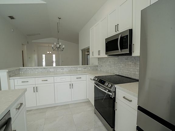 Welcome to this exquisite home nestled in a family-oriented upscale Boca Raton community. Vaulted ceilings, tasteful updates, and abundant natural light grace this 3-bedroom, 2-bath (2 car garage) sanctuary. Step inside to an bright foyer adorned with Italian marble tiles, evoking a modern European ambiance throughout. The large kitchen boasts Carrera marble accents, granite island and countertops, designated breakfast and formal dining area. All brand NEW Samsung appliances & w/d. Sunlit charm fills the home through all the windows and multiple sliding glass doors. Lakes at Boca community is designed for family living offering tennis courts, soccer field, basketball courts, walking trails, fitness center, & lake-view pool. Top-rated A+ Schools!!! HOA fees include Cable & Internet