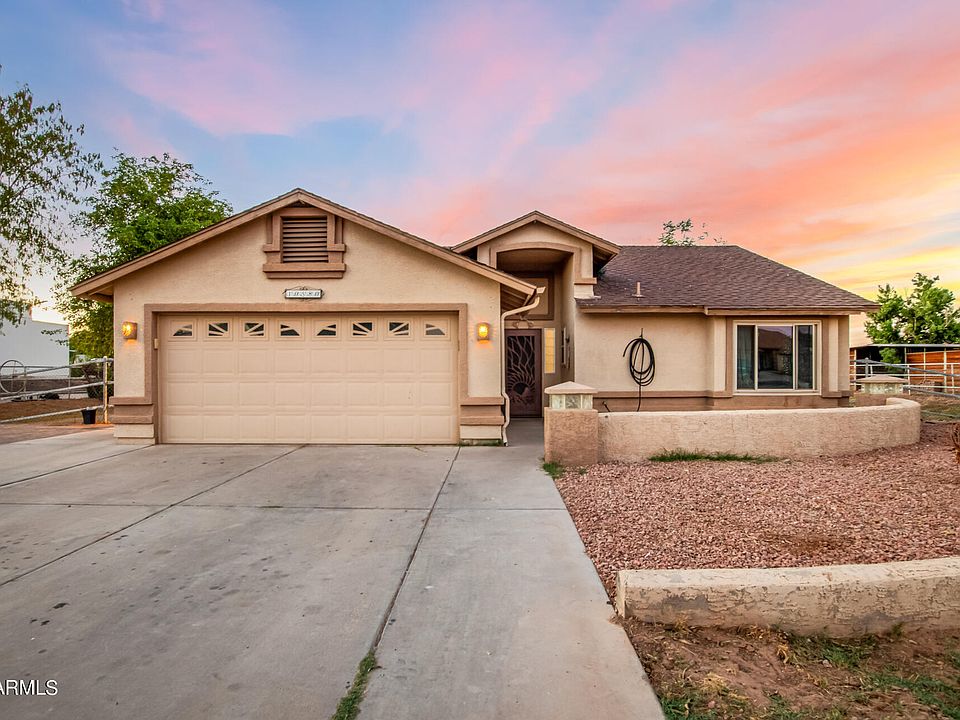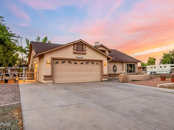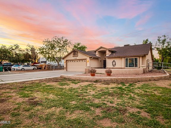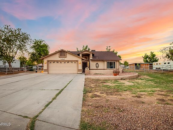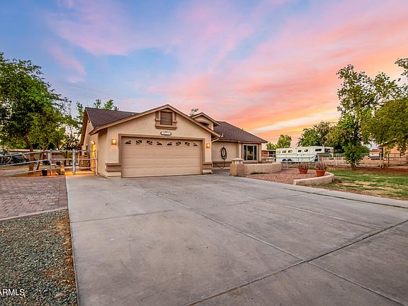 This is your chance to own this fabulous horse property in Glendale! This house offers a 2-car garage, RV gate, and a courtyard. Once inside, you'll immediately notice the welcoming living room featuring tile flooring, vaulted ceilings, neutral palette throughout, and French doors leading to the back patio. The kitchen comes with a handy pantry, recessed lighting, plenty of cabinets, matching appliances, and a dining area with a bay window. Discover the sizable primary bedroom, which includes plush carpet, a sitting area, a walk-in closet, and a private bathroom with dual sinks. Enjoy relaxing evenings on the spacious Arizona room without worrying about the weather. Massive backyard provides a covered patio, fire pit, and a 4-car detached garage. Become the proud owner of this gem!