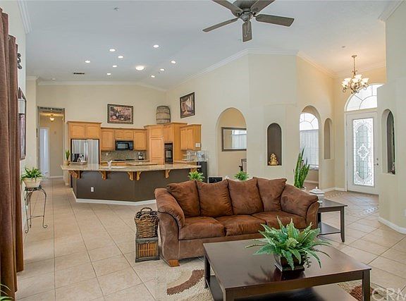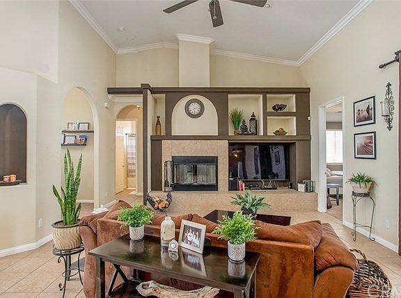 SEE VIDEO IN THE ABOVE LINK! This four bedroom home is a modern single-level, with high ceilings, arched doorways and an open floor plan, giving a very light and airy feeling. The front door has a leaded glass design inset. There is tile flooring in the great room and kitchen, with carpet in the bedrooms and office. The separate formal dining area is off of the kitchen. The great room has built-in media shelving and a gas fireplace. There is crown molding, recessed lighting and ceiling fans in most of the rooms. The kitchen has granite counter tops and back splash, an island and pantry. The kitchen is open to both an informal breakfast nook and the great room, making a large, easy space for entertaining. The roomy master bedroom has an expansive master bathroom with a double door entry. There is a separate jetted soaking tub, a large walk-in shower with double shower heads, and dual separate sink and vanity areas. In addition, there's a large bonus room with its own back entrance, that can be used as a game or family room. There is a built-in covered patio area, perfect for a BBQ and relaxing. The large 2.29 acre lot is fenced and ready for your custom landscape plan. It is zoned for horse property and is mostly all flat, usable land with the exception of the wash that they had built. IT EVEN SNOWS sometimes! Not a ton, just enough to play around in every once in a while!