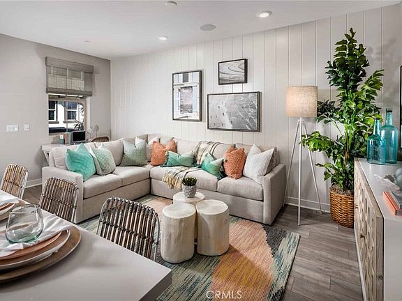 This new townhome community in tranquil Cypress truly has it all for those who want extraordinary Orange County living. This brand new neighborhood offers abundant amenities including a pool and spa, green belt, outdoor seating areas, and BBQ grills honor the Southern California lifestyle. This two-story home is a Residence One, which offers 1,566 square feet of thoughtfully designed living space: 3 bedrooms and 2.5 bathrooms. The first floor features a great room opening up to a dining space and kitchen, which includes stainless steel appliances including refrigerator, large island, and upgraded quartz counters with a full-height backsplash. Buyers will love the included luxury vinyl plank flooring throughout main living areas and plush, upgraded carpet at bedrooms and hallways. The primary bedroom offers dual walk-in closets, and an ensuite bathroom with dual sinks, quartz counters, and walk in shower with pebble floor. Throughout the home enjoy white shaker cabinetry, ample storage, upstairs laundry with side by side hook-ups, flat screen prewire at select locations, and smart home technology such as ring doorbell, smart thermostat, and Brilliant smart switches all included. Buyers will also appreciate the 2-car side by side garage, and quiet location within the community. To add even more fun, PCH and Seal Beach are only a short drive away for fun in the sun. Buyers will also be perfectly situated to enjoy iconic venues such as Disneyland, Knott’s Berry Farm, Angel Stadium, The Queen Mary, The Aquarium of the Pacific and so much more.
