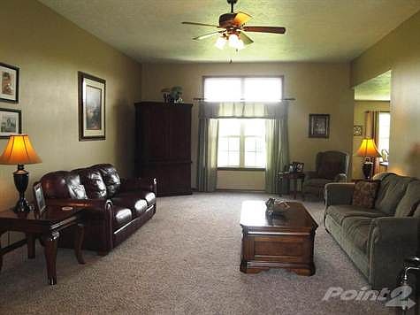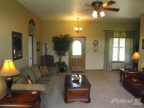 Private treed driveway & beautiful panoramic 10 acres. Almost 4,000 sq ft, 5 bedrooms, 3 bathrooms, 2 large living areas, 3 car garage, & John Deere room. Quality construction by Riverview Homes. Easy access to Hwy N, I-44, & James River Freeway. Pride of ownership shows. Large living room w/ great views and 10' ceiling. Large kitchen w/ custom built cabinets, eat-in bar, pantry closet, & gas range. Nice dining area w/ bay window & views. Tasteful colors coordinating carpet, tile, cabinetry, paint, counters, fixtures, fans, & hardware. Split bedroom floor plan. Master suite, nice bathroom, & huge closet. X-Large lower level living w/ 9' ceilings, lots of windows, pellet stove, 2 bedrooms, nice bathroom, & area for wet bar/small kitchen. Quiet, low traffic road, & gorgeous 360 views.