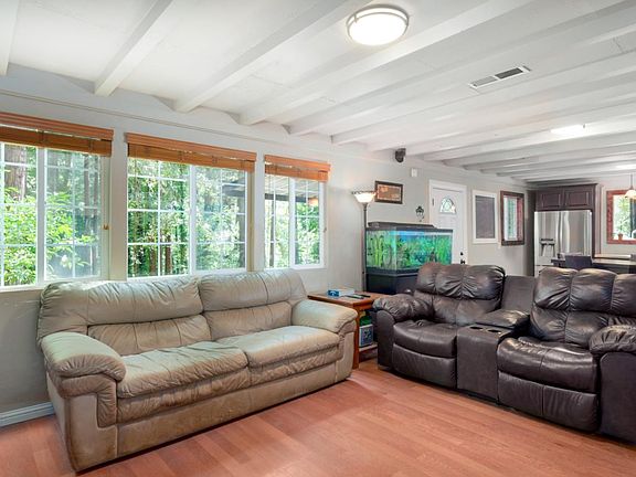 A beautifully updated & well-maintained home with an open floor plan, plenty of sun, lots of usable land & privacy - the surprise at the end of the winding private driveway! Part way up the drive, there is a near-level possible site for a 2nd dwelling. Architectural plans for an 800 SF guest house are included in the sale! Outside, there's a covered porch as well as a fire pit area. The property backs up to timbered acreage. Inside, there are open-beamed ceilings & engineered hardwood floors. The kitchen has custom cherry cabinets, a pantry, quartz counters & stainless appliances. The bathroom sports granite counters & tile flooring with radiant heating. This well-insulated home has HardiPlank siding, central FA heating & dual pane windows to keep everyone warm in the winter, cool in the summer. The area is famous for its biking & hiking trails & numerous State & County parks. Commuters have easy access to Santa Cruz & highways leading to Silicon Valley, Apple, Google, Facebook, etc.