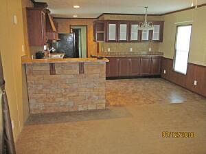 This well-maintained manufactured home is located on 1 acre of prime land in Omaha, Arkansas. The home boasts a spacious wooden front and back porch and a convenient shed with electricity on the property.
