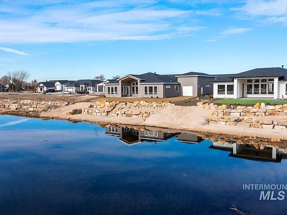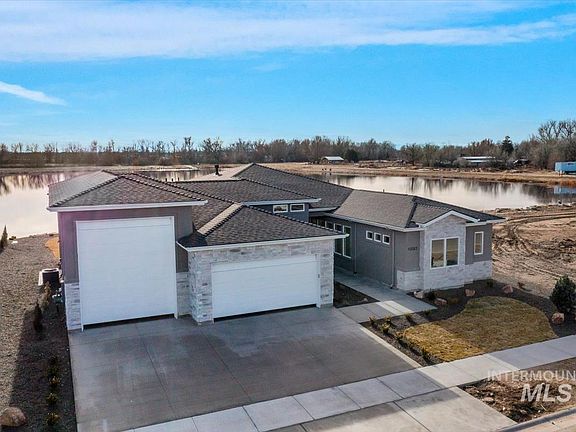 Picturesque setting backing to a spacious lake framed by the abundance of trees along the Boise River in the background where you will find wildlife, walking trails, plethora of open space and more! Enjoy your private beach area along the lake and prepare to be captivated by the impeccable views and endless recreational possibilities. The Tivoli/Den by Shadow Mountain is the perfect home! 3 large bedrooms plus a den all on a single level. Gourmet kitchen with designer Thermador appliances including a 36' fridge/freezer combination, and a beverage cooler, huge pantry with an appliance counter with quartz top. Extensive hardwood floors A 1335 sq. ft. garage that includes a large RV bay with a 14' tall door and 45' deep bay. This home is on the water on a 14-acre lake and features a private beach and incredible views of the Boise River area; You can enjoy fishing from your backyard, paddle boarding, canoeing, kayaking, you name it! Large, covered patio overseeing the lake!