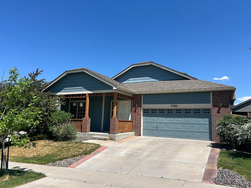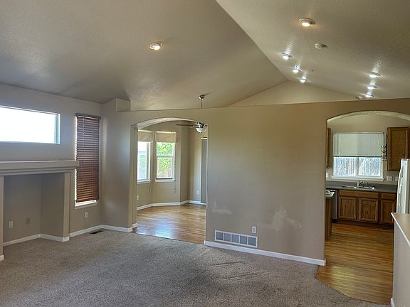 Bright and open living area, large kitchen/dining room. Vaulted ceilings throughout main living area, kitchen, and primary bedroom. On suite bath with shower, soaking tub, and double sink vanity. Large walk in closet off on suite bath. Covered front porch and back patio area. Very large unfinished basement is great for storage and recreation. Two car attached garage. Owner pays water and trash. Tenant pays electricity, gas, internet, cable.