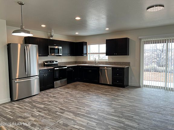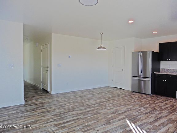 Beautiful, 1 year old duplex home in Prescott Country Club golf community, located at Fain and Hwy 69, on the east side of Prescott Valley. 3 large bedrooms, 2.5 bathrooms, great room and 1 car attached garage. GE Stainless Steel appliances including 27 cf French Door refrigerator and granite countertops. Washer and dryer included. Master bedroom has 2 separate closets and a full bathroom. LVT flooring throughout with no carpeting. Large fenced yard with nice open views. Owner/Agent
