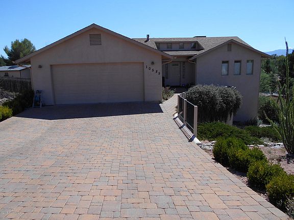 Sitting in the custom built unit of Oak Creek Valley is very rare 4 bedroom home that has a basement level that could be called the 4th bedroom, a mother-in-law quarters, a rental unit, a mans cave, etc. It has a private entrance or can be entered through a spiral staircase. It is complete with a mini kitchen and bathroom. This home is very well taken care of with beautiful landscaping and views of the Mingus Mountains. The upstairs area has 3 more bedrooms with the master having an attached bath with shower, Jacuzzi tub and a large walk-in closet. Sit outside in your own enclosed screen deck that overlooks the community. Located in walking distance of the clubhouse, pool and spa. One of the bedrooms are set up as an artist studio that can be use as a workout room or hobby room also...