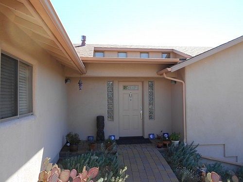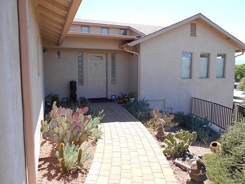 Sitting in the custom built unit of Oak Creek Valley is very rare 4 bedroom home that has a basement level that could be called the 4th bedroom, a mother-in-law quarters, a rental unit, a mans cave, etc. It has a private entrance or can be entered through a spiral staircase. It is complete with a mini kitchen and bathroom. This home is very well taken care of with beautiful landscaping and views of the Mingus Mountains. The upstairs area has 3 more bedrooms with the master having an attached bath with shower, Jacuzzi tub and a large walk-in closet. Sit outside in your own enclosed screen deck that overlooks the community. Located in walking distance of the clubhouse, pool and spa. One of the bedrooms are set up as an artist studio that can be use as a workout room or hobby room also..