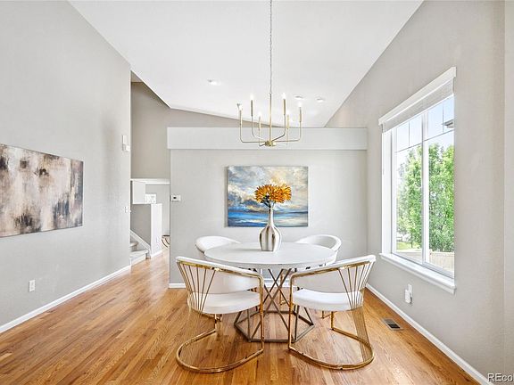 Experience a seamless blend of style and low-maintenance living in this home nestled within The Hearth. Offering captivating mountain views, this home is a showcase of sophistication and comfort. An expansive, sun-filled living space exudes warmth and elegance w/ a tiled fireplace. Gleaming oak hardwood floors span the main level, reflecting abundant natural light that pours in through oversized windows. The gourmet kitchen serves as the heart of the home, featuring sleek appliances, a tiled backsplash and an expansive island — perfect for exploring culinary creativity and entertaining guests. Retreat to the primary bedroom, featuring a lavish en-suite bath adorned w/ premium finishes. Two additional bedrooms and a finished basement w/ egress windows offer plenty of space flexible to new residents’ needs. A laundry area w/ a washer and dryer set and an attached 2-car garage are added conveniences. Discover a private outdoor oasis on the recently redone Trex deck in a private backyard. In addition, Hearth Park is just down the street from the property.