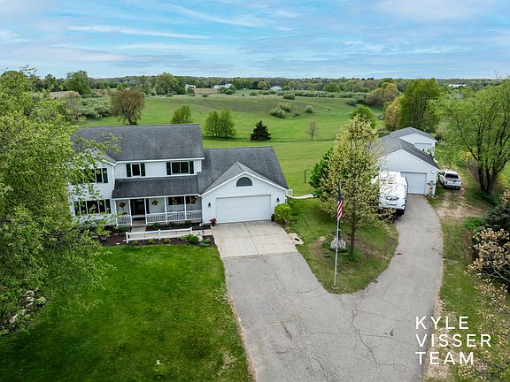Set on nearly 10 acres, this spacious Rockford farmhouse offers the perfect private retreat. Built in 1998, the home features 5 bedrooms, 4 full baths, and multiple living spaces with expansive views of the rolling landscape. The upper level includes a generous primary suite with walk-in closet and spa-like bath, plus two additional bedrooms and a full bath. The walkout lower level offers two more bedrooms and a large rec room. Two outbuildings provide ample space for vehicles, equipment, or workshop needs. A long, tree-lined driveway and thoughtful landscaping create a peaceful, secluded setting just minutes from town.