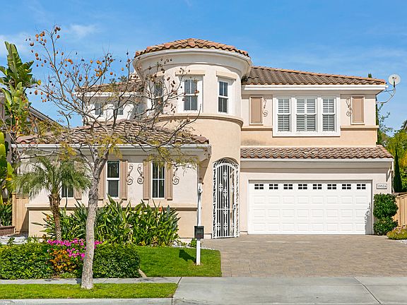 Rarely available gorgeous Belmont plan 3 home, This model perfect 5 bedroom, 4 bathroom home with large loft & private, detached office ( professionally converted 3rd garage to a detached office, adding 153 sqft, which is not reflected in tax record). It features hardwood flooring upstairs & downstairs, sweeping staircase, cathedral ceilings & dual sided fireplace and shutter throughout. Completely remodeled gourmet kitchen features: exotic quartz counter tops, high-end custom cabinets with soft closing, upgraded gold fixtures and hardware, commercial grade SS Thermador appliances with Viking range hood, all bathrooms remodeled with custom shower and tub tiles and granite counters, expansive master suite includes fireplace, walk-in closet and deep soaking tub. Additional features: SOLAR SYSTEM PAID FOR with SDGE credit every month, downstairs bedroom with full bath, dual zone AC/heat, built in BBQ & lush landscaping with mature fruit trees: apple, peach, orange and Pineapple guava. Steps to Sage Canyon Neighbor park and school. Close proximity to Carmel Valley's award winning schools (DMUSD & San Dieguito Union High School District), beaches & freeway access (5, 805 & 56). Experience some of North County's best dining, entertainment and shopping at nearby Del Mar Highlands Plaza, Pacific Highlands Plaza and the soon to be completed One Paseo project... There isn't room for much more! Hurry! This one is not going to last!!