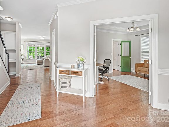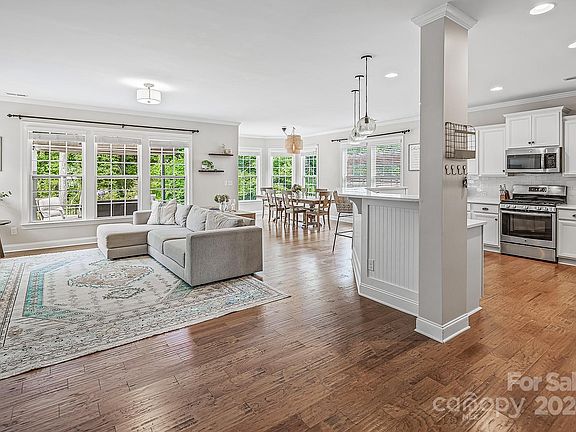 Welcome to the beautiful Cabarrus County subdivision of Brookvue! This is a meticulous two-story home with TOP-rated public schools. Five bedrooms and 3 1/2 baths in an open floor plan with hardwood floors, crown molding, and recessed lighting. Spacious family room with natural light and beautiful views of endless woodlands! The dining area also overlooks the woodlands. The open space kitchen presents skyline cabinets, quartz countertops, and generous pantry space. Downstairs is a private bedroom with ensuite bathroom. The spacious primary bedroom with grand windows faces the private protected woodlands, has a tray ceiling, a huge walk-in closet, and a spa-inspired bath. The back patio is nestled in a serene, wooded surrounding, with a fire pit and beautiful views. Located near the Community Clubhouse with a pool, playground, and volleyball court. EV 240v outlet in the garage. Close to I77/I85/I485. Your amazing lifestyle awaits—schedule a viewing and make this house your home!