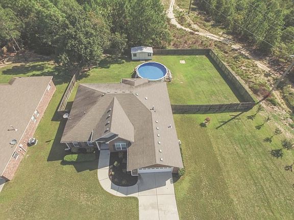 Qualifies for 100% financing! Fantastic all brick 3 bedroom 2 bathroom home with attached two car garage on cul de sac! Awesome above ground pool with new liner may stay! French doors open to perfect office or den w/ceiling fan! Dining room with crown molding, wainscoting and an arched window! Living room has vaulted ceiling, ceiling fan, gas fireplace & opens to the breakfast bar & breakfast room! Beautiful kitchen w/custom cabinets, granite counters, gas stove, built in microwave, dishwasher plus newer refrigerator may stay! Two large pantries! Owners suite has tray ceiling,ceiling fan, huge closet w/shelving plus private bathroom w/ceramic tile floor, water closet, garden bathtub, step in shower & dual sink vanity! Split floor plan with 2 guest bedrooms each w/walk in closet! Guest bathroom w/dual sink vanity! Large laundry room! Covered patio overlooks privacy fenced backyard w/pull through gate! The 10x20 outbuilding w/electric stays! Amazing views and no one to build behind you!