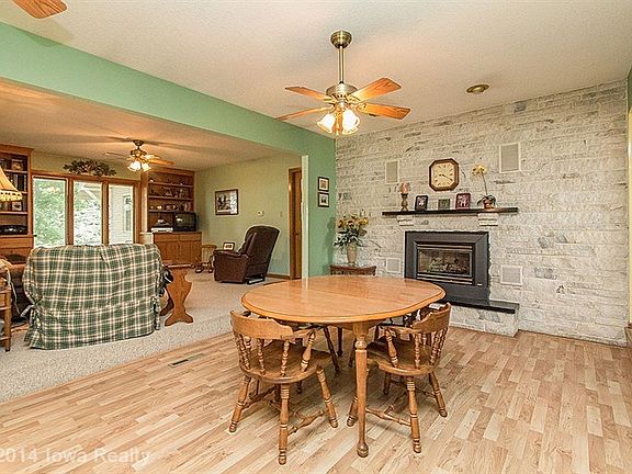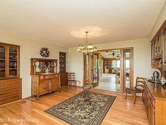 Beautiful Brick 3+ BR Ranch located on 3A m/l, 10 miles from Jordan Creek. This well maintained home has a LR & formal DR with beautiful Hrdwd floors beautiful built ins. The updated kitchen has lots of storage, granite counter tops and seating at the breakfast bar, all appl stay. There is a mud rm, laundry on 1st lvl, 1 full bath and two 3/4 baths and central vac. A lg fam rm with a beautiful gas heatilator fireplace and more built ins is located off the kit. A very lg office with walk in closet/storage will help organize your work or crafts. The 4 season rm is lg, has knotty pine walls, lots of windows and a very nice hot tub that stays. The master BR has a great walk in closet and bath. The full basement is partially finished and has a pool table that stays. On the back of the house is a stenciled private patio. A 2 car gar is attached and there is a 72x48 Morton building.