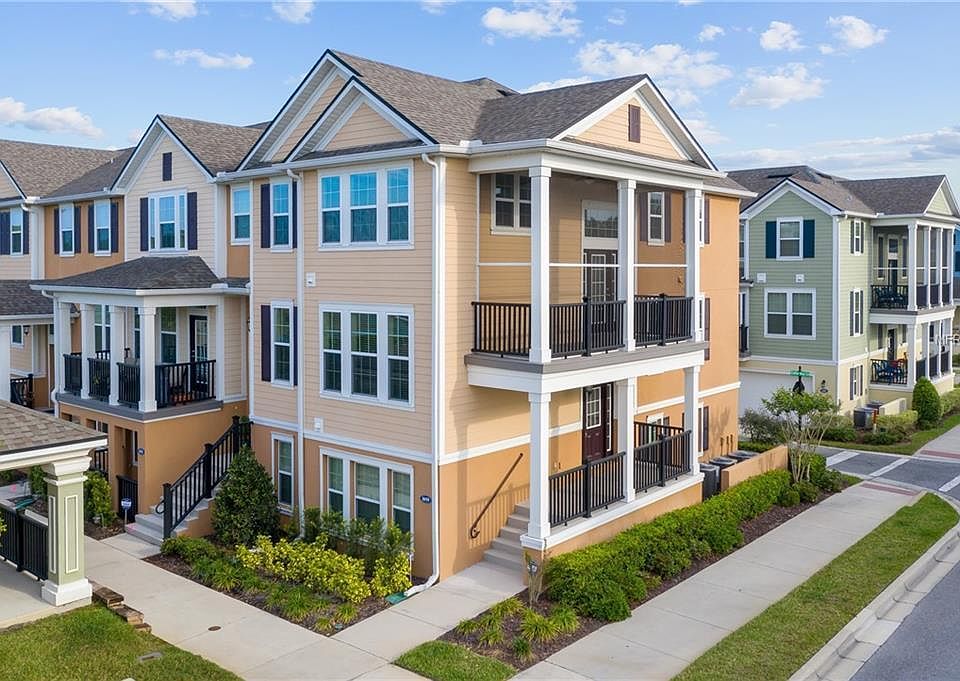 Swanky 4 bedroom 3 1/2 bath end unit town home with two car garage adjacent to the Winter Springs Town Center. Like new with many awesome upgrades, this townhouse boasts the best floor plan in the neighborhood with huge rooms and an easy flow flooded with natural light. Your feet will love the easy to maneuver stairwells adorned in gorgeous hardwood. Start your tour by entering a stately raised exterior entrance. Once inside head up half a flight to the amazingly large living room and inviting spacious kitchen and dining area with access to a screened balcony. This spectacular kitchen features a giant granite island, gleaming stainless appliances and handsome upgraded cabinetry. Head up to the restful bedrooms level with luxurious baths or stop halfway at the additional screened balcony for a birds eye view of the neighborhood. The spacious bedrooms feature ample closets and upgraded bathrooms. For a quiet spot, the garage level bedroom and bath is great for a guest suite, movie room,or office. Feel like a swim? Just walk 200 feet to the community pool with access to the clubhouse with work out facility and billiard room. Seriously? Yes! However, if that is not good enough, walk over to the Town Center to enjoy restaurants, a top notch gym, grocery stored live entertainment. Want to watch football, or baseball games? Just walk over to the Central Winds Park! Want to jog, ride bikes, or take a leisurely stroll? Hit the Cross Seminole trail! Maintenance free living can be yours! Make it happen!
