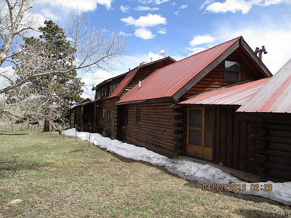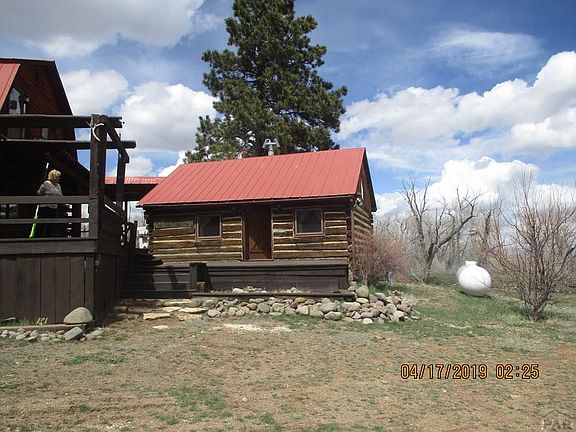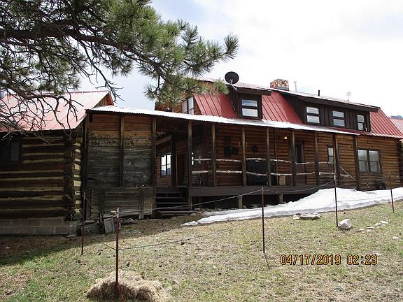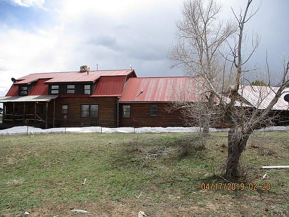 If you are looking for rustic, rural, acreage property for your animals that sits at the base of the Sangre de Cristo's AND is a log home, you are in for a treat. Over 40 acres of peace, tranquility and quiet while you sit on your covered 3 side wrap around porch. Have company coming? There is a 423 sq. ft. cabin with bath, kitchen and bedroom area. The main home has an enclosed solarium for the plant lover. The main floor has a large living room, dining area and country kitchen. The rock fireplace with wood insert will warm you on those crisp fall and winter evenings. The country kitchen will not disappoint. Nice cabinetry, refrigerator, dishwasher, range/oven and microwave appliances are all included! There is also a bar area for your wine and glasses! The ceilings are wood beams and the walls are log. There are two bathrooms on the main floor, one with a claw bath tub. The laundry room includes the washer and dryer. Walk upstairs to the loft area that has an abundance of storage space, two bedrooms and one bathroom. The basement includes a freezer and has a crawl space area for further storage. Electric hot water heat as well as propane forced air is a plus! The property also has a foaling barn with a garage door, gates and hay being left behind. The metal roof stands up to any weather that may come its way. Property has perimeter fencing, well, septic system and olden relics being included for your rustic ranch enjoyment.