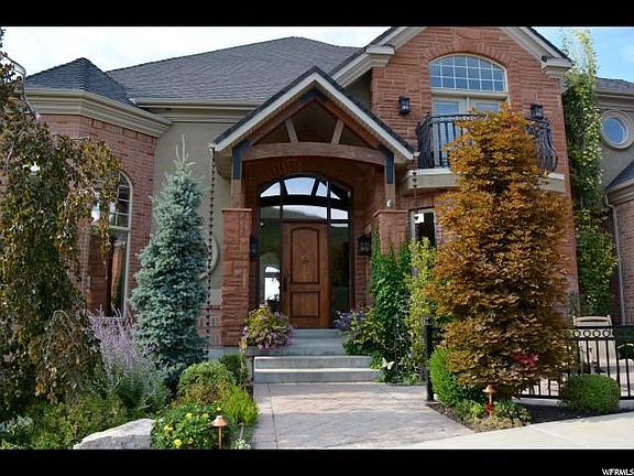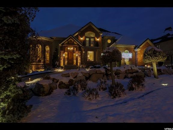 Overlooking the Eaglewood golf course, this meticulously maintained home features two heated garages with one large enough for a boat, motorhome, or two cars (for a total of five), automated smart-home lighting indoors and throughout the yards, electric sun shades on both panoramic living room and master bedroom windows, 100-gal hot water capacity (softened), and invisible pet fence. Its landscape lighting, large heated pool with water-slide and corner fountains, large BBQ pit with built-in gas grill and fireplace, ornamental gas tiki torches, extra kitchen downstairs, and projection theater system make this home ideal for both entertaining and relaxing. Lots of storage, including mechanical lifts in one garage and tool/tractor/mower storage in the poolhouse. Just 10 minutes from downtown Salt Lake City!
