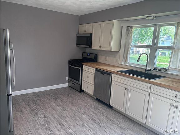 Here it is; exceptional Completely remodeled and modernized style Home you have been seeking. Light - bright and freshly painted comes this fabulous home just down from the school. The roof is 2 years old, vinyl siding is 5 years old, Air Conditioning is 5 years old, New windows 5 years ago, Stainless Steel - 5 year old appliances stay with the home; refrigerator, microwave, great Gas Range & built-in Microwave + washer + dryer, Faux vinyl Marble/wood style flooring throughout. There is much more to appreciate, a one car oversized garage, big fenced backyard, beautiful flora, 3 bedrooms with great closet space, a floating sink & cabinet in the bathroom is spectacular, big Livingroom and many nice appointments such as lit ceiling fans, concrete driveway, additional parking pad and room for you and clan to grow. Find your spot at 1059 Elmont in Sullivan, close to parks, community pool & Meramec River campground for entire day or weekend at play. Additional Rooms: Mud Room