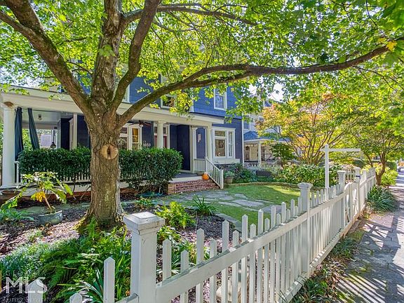 Classic 2-story four square craftsman w/white picket fence & huge wrap-around porch in Inman Park! Huge foyer, built-in bench & restored pocket doors. Original trim + oak & heart pine floors. 5 fireplaces! High ceilings, historic fixtures. Huge dining rm & separate living rm, updated kitchen w/stone & stainless. 3 big bright BRs & 2 full baths upstairs incl. owner's suite w/huge walk-in closet & small bath. Walk-out terrace level w/separate entry & studio apt. Big yard & off street parking for 3 cars. Walk to Freedom Park, Inman Park Village shops and restaurants! Sweet!