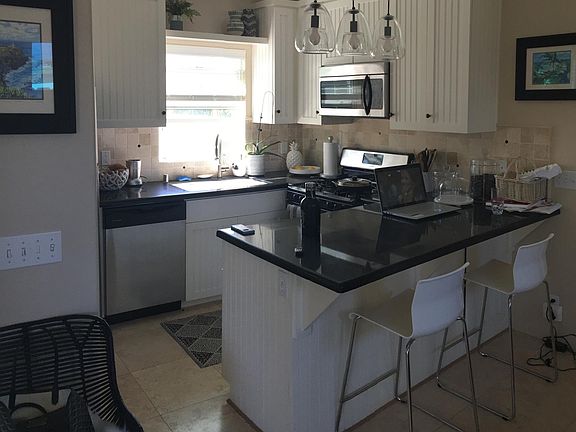 Adorable detached highly upgraded cottage with private yard. Unit has its own washer & dryer. Very Beachy with white custom cabinets and built-in. Travertine flooring throughout. Granite in kitchen. Dishwasher and air-conditioning. You have your own washer & dryer. Extra Storage shed in yard. Owner pays water, trash, gardener and gas. Tenant pays electric.
