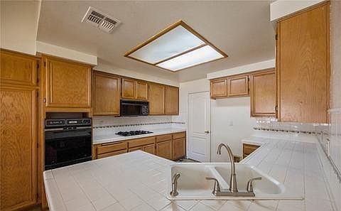 This quaint three bedroom and two baths home was built by the award winning homebuilder Jerry Rice. The open and bright floor plan won the design award for use of high ceilings, alcoves and open space layout. Some of the features include: Concrete tile roof with metal rain gutters, custom drapes in living room, dining & entry, upgraded carpet and ceramic tile, ceiling fans, mirrored closet doors, large hi-ceiling walk-in closet in master bath, separate oval tub & shower in master bath, gas range & oven, & new Kenmore Elite dishwasher. Oversized 3 car garage(34x20) with finished 10 foot hi-ceiling. The home has been recently painted and is truly turnkey and ready to move in. Plenty of outdoor space in the park like setting with mature palms, patio cover, dog run, and tool shed. Walking distance to newer elementary and middle schools. Quiet Cul de Sac street Location, Location, Location!!