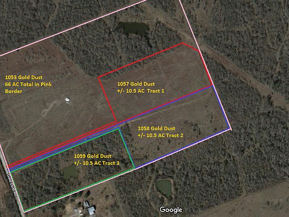 Gold Dust Estates 1059 Gold Dust Rd ; Seguin ; Guadalupe County (Tract 3 of 3) (830) 243-2664: Call or text to come walk the tract. 10.5 acres +/- for sale. Beautiful property waiting for you to bring your family and build your dream custom home on! Secluded to give you that "out in the country" feel, yet only 15 minutes from New Braunfels (close to FM 725) - three minutes from I-10 ; twenty minutes to I-10/1604 San Antonio. RESTRICTIONS: This tract is one of three 10.5 acre tracts for sale and is part of 66 total acres. ***Seller / owner is keeping the remaining portion of the 66 acres to build on. All 66 acres will have restrictions to keep everyone’s property looking great! (Only onsite built homes allowed, only one primary residence per 10.5 acres, no subdividing, etc). POND: There is ½ acre pond that has a seasonal creek that flows into it. This pond easily has the potential to be expanded to a multi-acre pond. The pond is stocked with catfish and perch. HUNTING: With the brush and pond, there are Whitetail Deer, dove, quail, and passing feral pigs. TERRAIN: This specific tract is roughly 90% brush with beautiful mature Elm Trees and Mesquite Trees. This tract is in the front half with 400+ feet of road frontage. The best home site would be towards the front of the tract. SCHOOL: Marion ISD and Seguin ISD boundary cuts through this tract. UTILITIES: The property has direct access to electricity (GVEC) and county water (Green Valley). MINERALS: 100% Mineral rights convey with the property with full asking price. SOIL: Black fertile farm land. Great for holding moisture during dry spells. Drains very well. AG-EXEMPT OUTSIDE CITY LIMITS