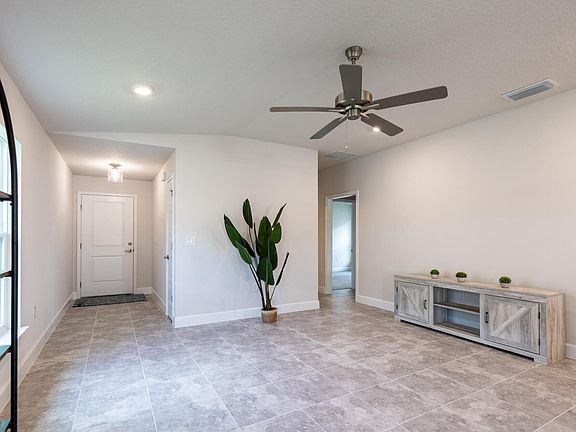 Est FHA P&I payment $2,152.00/Mth. $1,000 Deposit and you save thousands with all closing costs paid (except escrow items) using our approved lender. NO CDD! Desirable Homesite 135 in a new gated community easily accessible from I-95 Exit St. Johns Parkway. This home features a gorgeous paver driveway and stone accents. Enjoy desirable tile in the foyer, great room, kitchen, and baths. Stunning cabinets with crown molding enhance the stainless steel appliances. The owner's suite includes a walk-in closet and a 5' shower in the bath. Additional features include Moen brushed nickel faucets, five-panel doors, and a covered lanai. The community offers a pool with a pavilion. Real estate agents must register buyers at the model home at 1000 Canfield Circle, Palm Bay, FL 32909. Photos are samples; colors and options may vary.