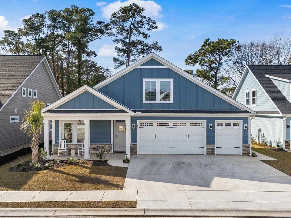 Location, Location, Location! Fully fenced yard with Privacy fence!!! Do not miss this 2 car garage PLUS golf cart garage in the new community of Robber's Roost East of 17. Golf cart ride almost anywhere you want to go including Cherry Grove and Ocean Drive Beach. This custom designed Emerald floorplan has all the upgrades and has never been lived in, built in 2023. Natural gas gourmet kitchen with stainless steel cooking hood, double oven and custom light fixtures. Master suite on first floor with 3 additional bedrooms. Upstairs there is an extra room and a full bath. The open floor plan between the kitchen, dining and living room is perfect for all of your gatherings. Sliders off the dining area lead to a covered screened room, extra concrete patio and outdoor shower. Brand new washer/dryer will also convey. This community allows HOA approved sheds which is very rare. Enjoy a quick walk to the pool or Coastal North Shopping Center including Publix, Hobby lobby, Hickory Tavern, Dicks sporting goods, Edison fitness, Panera Bread, Nail Salons, and many more shops and restaurants. This truly is an amazing location with all that North Myrtle Beach has to offer and it is all with in walking distance.