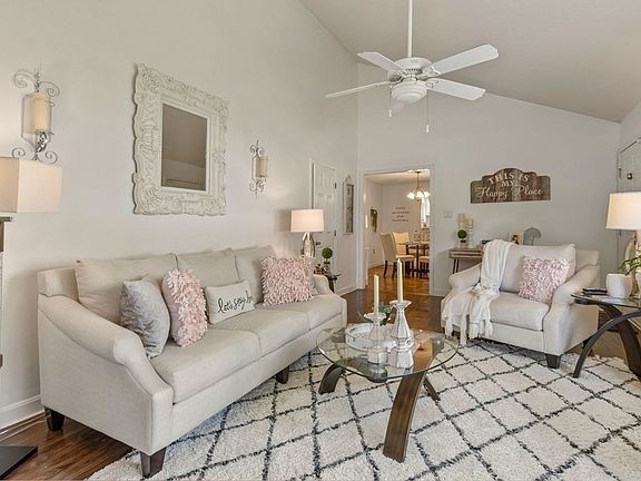 CUTE AS A BUTTON! This gorgeous garden style condo in Ridgewood Village awaits new owners. The kitchen boasts a lot of love with clean white cabinets and a galley style set up that also offers a dining area for breakfast. The dining room opens to a spacious living room with gorgeous wood floors and vaulted ceiling. With 1 and a half baths and 2 spacious bedrooms, it's the perfect size for hosting company or spreading out. The precious patio off the back door allows you to enjoy the outdoors while never being too far from your own condo. Association offers a community pool for cooling down and clubhouse for hosting parties if you ever decide you need more space! Unit comes with garage only a few steps away from your unit! Book your showing today!
