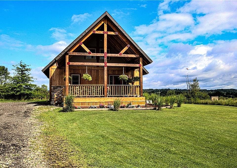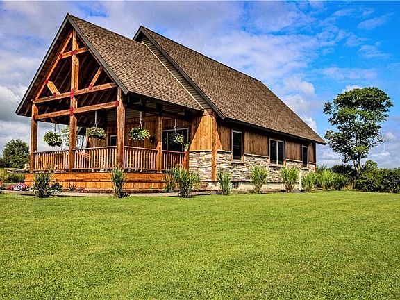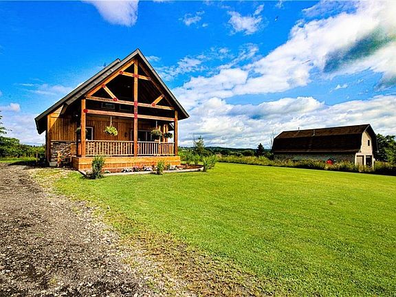 Secluded 3 bedroom, 2 bath home conveniently located close to restaurants, grocery stores & more. Situated on approximately 5.70 acres of land this home features 15x20 post & beam porch w/beautiful views, inside features an open living & dining room area. Modern kitchen w/ stainless steel appliances & laundry area. Also down stairs are 2 bedrooms & full bath. On the second floor is a loft area that could be turned into a 4th bedroom, another bedroom & 2nd bath. Basement could be easily finished w/ pre cast walls, & plumbing already added for 3rd bath. Has plenty of storage space. Over in the 32x52 Garage/barn w/ 12'x10'insulated steel door(garage door opener)is more storage & upstairs could be more living space. This home is a must see! Call today for your private showing.