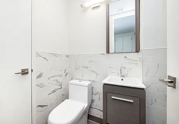 Welcome to this perfectly laid out one bedroom home which offers an en suite bath plus half bath, spacious open concept living, and private 8' x 8' terrace. As you enter apt 3A, the floor-to-ceiling east facing windows flood your living room with light. The open layout connects the living areas via the quartz breakfast bar which adds function and style to this high end kitchen equipped with soft close drawers/cabinets, storage galore, Liebherr refrigerator and stainless steel Bosch dishwasher & stove top / oven. Your private Master Bedroom offers serenity with a wall of windows for natural light, a generous walk in closet, and en suite bath featuring Burlington tile and porcelain wrapped floors and walls, a frameless glass enclosed shower with rain-style shower head and deep soaking tub. This home offers natural oak hardwood floors throughout, an in unit WD, and individually controlled central air conditioners. Located in the heart of Greenpoint, a cozy neighborhood in Brooklyn, your new home is 2 blocks away from the river front and steps to the G train. Within easy reach of fine dining, shopping, and non-stop recreational opportunities. A water taxi stops conveniently between India and Java streets, connecting Greenpoint to the rest of New York City. No pets. No smoking.