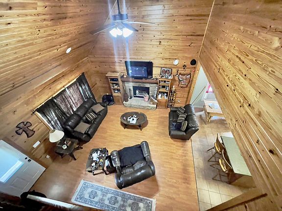 Looking for that home in a country setting with a cabin feel? This is it! This property is a must see, located on 12+ acres with a 40x48 metal shop, doors are 6 ft tall by 13 ft wide and includes power. Home has 2 bedrooms downstairs and 1 bath, second floor has 1 bedroom and 1 bath. There is a covered porch front and back overlooking yard. This property backs up to creek and pond. SOLD AS IS. Make an appointment to see this home today.
