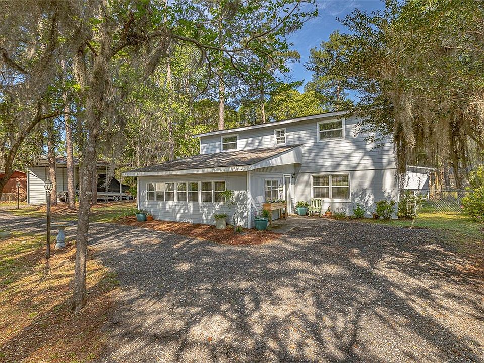 Coastal Home located in Belleville's Stafford Subdivision. This home has been thoughtfully updated and loved by the sellers. Three bedrooms, two bathrooms, Large sunroom off the kitchen and dining room. The kitchen has stainless appliances and quartz countertops. Working wood burning fireplace brings charm to this timeless cottage. Rear office overlooks the fenced backyard. You will also find a plumbed, fish house, fire pit, and large 2 car garage. The seller installed covered boat storage for easy access to your vessel. There are entry gates on River Street and Cedar Street. This is the perfect get-away or full time residence. Head over to Fish Dock restaurant, it's only 2 streets over! Public boat ramp within community - convenient to launch boat and then tie to dock of community. Voluntary membership gives you access to private community boat dock and park overlooking the Sapelo River. Close to Savannah, Brunswick, St. Simons Island and Jekyll Island, 25 min boat ride to barrier islands (Blackbeard Island, Sapelo Island, the list goes on!)
