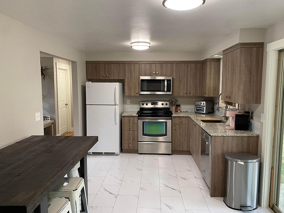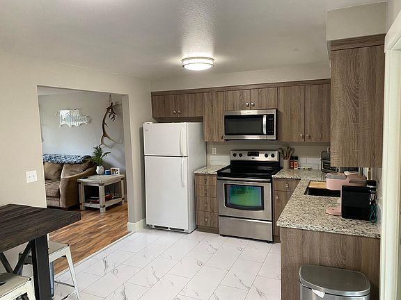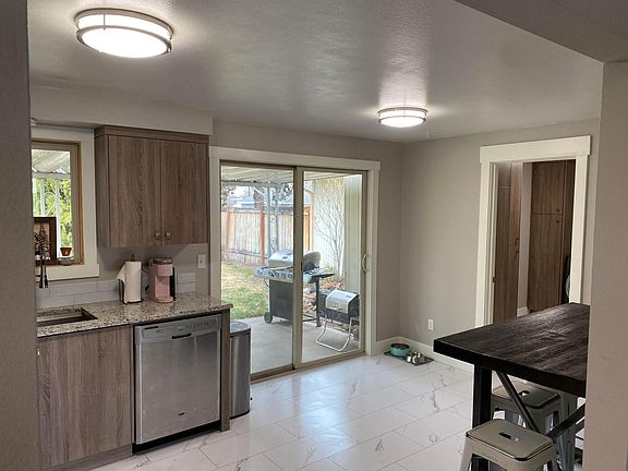 Newly renovated home, including granite counter tops in kitchen and bathrooms. New custom cabinets in kitchen, bathrooms, laundry room, and hallway closets. Includes all new appliances seen in photos. All doors in the home are new. Carpet in both bedrooms are new along with the flooring throughout the home. Fresh interior paint throughout the home as well. This home includes a one car garage. Private fenced back yard, home is located on a dead end street near downtown Redmond, many parks, and the dry canyon. This house is pet friendly. Application fee paid by applicant. Viewing under appointment only. Renters are responsible for their own power and WIFI. The garbage and water is split and paid to the owner.