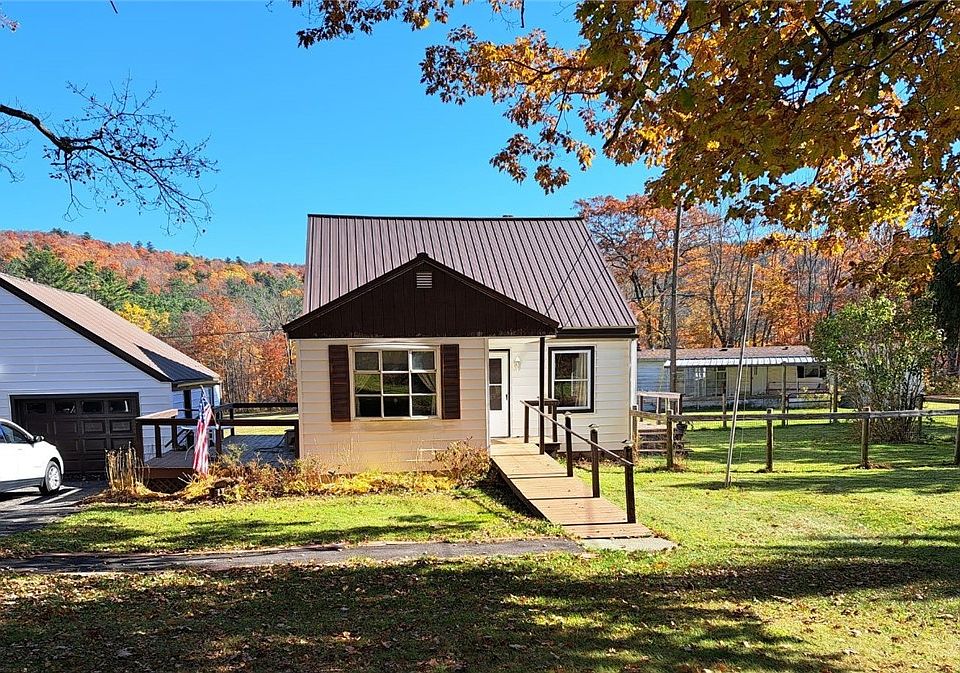 Charming Country Retreat just outside of Oneonta, NY! This 4 bedroom, 1 bath home on almost 5 acres with detached 2 car garage, single wide home and an additional lot with separate entrance could be a great property for investment or in law/extended family!