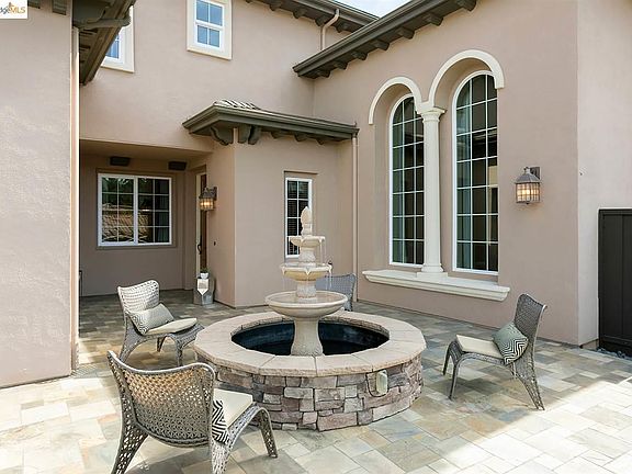 Live the good life in this palatial Mediterranean inspired contemporary in the prestigious Sycamore Heights community. With an ideal location in a beautiful rural setting between Castlewood Country Club & downtown Pleasanton, you'll enjoy tranquil westerly views of Pleasanton Ridge from many vantage points, like the sitting room of the utterly impressive Master suite. Vaulted ceilings create a sense of spacial freedom in the living room and formal dining room, & the downstairs en suite guest bedroom or in-law is separate from the four bedrooms on the upper level. An bonus office with attached full bath can easily become a 6th bedroom. Your inner Master Chef will shine in the fabulous eat-in kitchen & there's plenty of space to entertain both inside & out such as the gorgeous professionally landscaped backyard with raised planter beds to grow your own tomatoes & herbs, a fire-pit to gather round & a covered outdoor dining area for evening delights. Cheers to you!