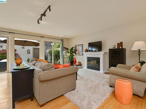 GREAT LOCATION! Lovely & desirable F Model townhouse facing the greenbelt. Light-filled & spacious w/gleaming bamboo floors, recessed lighting, remodeled kitchens & baths, dual paned windows. Serenely landscaped private patio & spacious 2-car garage. Near tennis courts, pool clubhouse & shops.