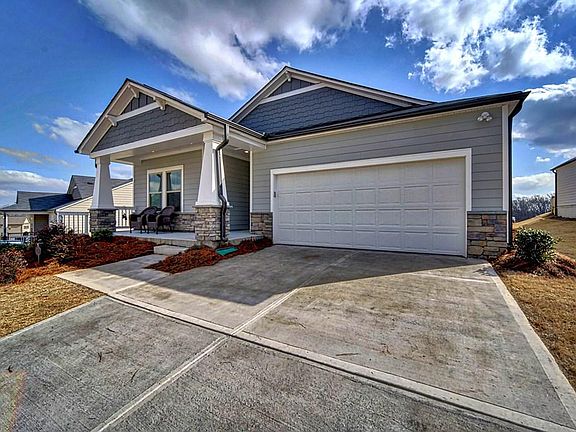Built in 2020 this like new 3BR/2BA is move-in ready! Convenient to shopping and dining and, with the proximity to I-575, you'll be home while others are stuck in traffic. Towne Mill features a community pool with splash pad and slide, tennis and basketball courts. On a premium lot, your new home features a ring doorbell and Wi-fi garage door opener, sprinkler system, island kitchen with gas stove and walk-in pantry, gas fireplace in the spacious living area and lots of windows to let in natural light. The primary suite has a luxurious bath with an oversized tile shower, double vanity and large walk-in closet. The split bedroom plan offers tons of privacy. The backyard is fenced and has a great cover porch area for enjoying the outdoors with beautiful mountain views. Enjoy fishing & golf.