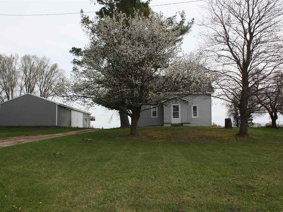Great location for this 1200+ square foot home. This three bedroom/one bath home sits on 1.27 acres on a paved road. Semi secluded setting with some mature trees. Master bedroom, bathroom and laundry located on the main level with the kitchen and living room. Upper level had two bedrooms and lots of storage!! New roof in 2015. Partial utility basement. 30x60 pole barn for lots of storage. Owners love the quiet setting!! One year home warranty included.
