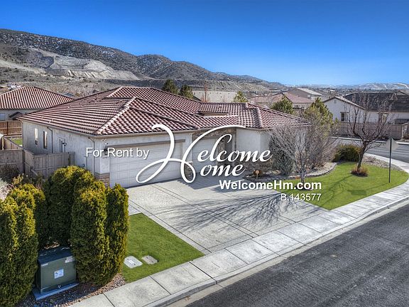 Newly updated with a terrific floor plan, 4 bedrooms plus an office, dramatic high ceilings, gorgeous tile and wood laminate flooring! Perfect for entertaining, attractive great room features a gas log fireplace and a generously sized kitchen with double ovens, huge island and granite counters. Spacious master bedroom suite - relax in the deep garden tub! Located on a corner lot in a cul-de-sac, close to schools, parks, and walking trails, with shopping and great restaurants nearby. Only 3 blocks to Damonte Ranch High School! Lots of closets and storage! Dual heating and cooling zones! Ceiling fans in most bedrooms! Three-car garage is fully dry walled, textured and painted and features shelving plus an opener with remote for each extra-tall door (perfect for roof racks and tall trucks!) Professionally Managed by: Welcome Home Property Management Showing requests and applications can be scheduled through our website at Welcomehm, on the rentals tab. Lease Terms: 13 month lease, No smoking, application and application fee required for all adults. Tenants are responsible for all utilities, renter's insurance, $10 per mt for furnace filter and abiding by City Ordinances &/or HOA CC&R's. Owner provides basic landscaping service maintenance during the grow season. The Security Deposit is the same as the rent as long as there are no pets and everyone's credit score is 650 or higher. Pets: Owner MAY consider up to three pets upon owner approval with an additional $500 (min) security deposit per pet and $50 pet rent/pet fee (min) per mt. A separate pet application must be completed for each pet through PetScreening. Petscreening does charge a fee for pet applications. There is a pet application charge of $20 for the first pet, $15 for any additional pet, and $0 for an assistance animal accommodation request. PetScreening: https welcomehm. Please read application and lease terms at the bottom of the page. Applicants need not be present to lease; our process is completely electronic. We will lease sight-unseen if you're out of state or out of the country.