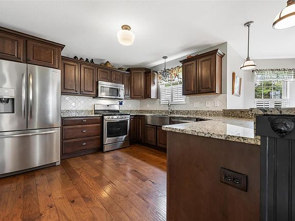 Welcome to your dream home! This magnificent 4Bed, 3.5Bath offers an exquisite blend of luxury, comfort, and style. Nestled on a flat lot that backs to serene wooded common ground. As you step inside, you'll be greeted by the gleaming wood floors throughout the main level. The open-concept living area is adorned with elegant colonial baseboards. The LR features a cozy fireplace and large windows that flood the room with natural light. The kitchen boasts granite countertops & stainless steel appliances. The dining area offers a picturesque view of the backyard. Upstairs, you'll find four generously sized BR's, each with its own walk-in closet. The master suite features a luxurious Jacuzzi tub, separate shower, and dual sinks. The fully finished walkout basement includes a full Bath, an optional bonus room, and a spacious recreation area. French doors lead to a covered patio. The expansive deck overlooks the private backyard. Also features Large 3-CAR Garage. Don't miss this rare find!