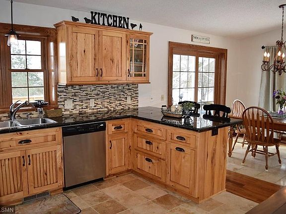 Warm decor, 1.07 acres! 5 bedrooms, 2 baths, nicely updated with newer furnace, AC, windows, lighting, doors, flooring, paint, stone, gutters, roof and more. Kitchen boasts hickory cabinets, tile tops & backsplash, stainless appliances, breakfast bar. Tile & hardwood floors, vaulted ceiling, oversized foyer, custom built lower level bar. Finished attached garage AND a 30x26 heated & insulated detached garage. 16x14 deck, mature lot overlooking the Crow River. Septic system to be replaced at the seller's expense.
