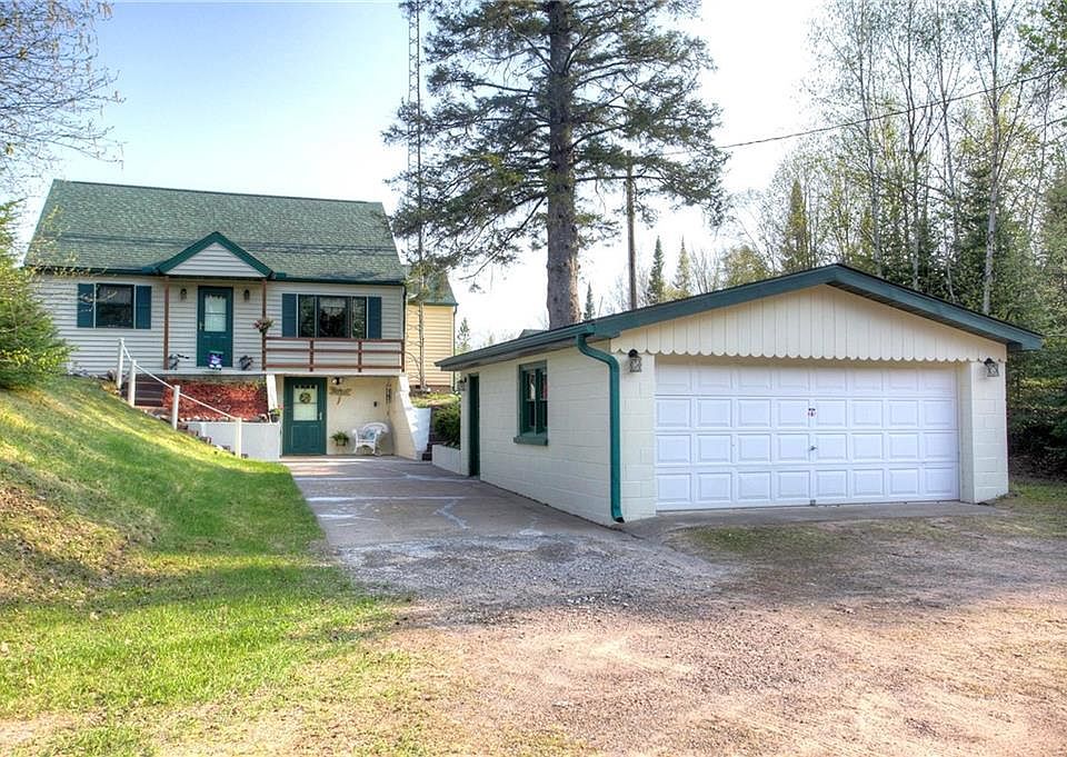 Quiet Country Setting for this clean, well-maintained 3 BR, 1 BA home on approximately 5 acres surrounded by some of Hayward, Wisconsin?s premium lakes. New maintenance-free vinyl siding & new roof with screened gutters. Screen doors approx. 2 years old. New exterior lights. Marvin windows throughout the home + replaced screens. The original hardwood floors are under the carpet in the LR & DR area, stairway/upper level. Interior has been repainted. Walk-out basement has a shower & storage spaces; new carpet squares have been laid down in 2023. 2 car detached garage w/fresh epoxy floor. Wood deck faces private backyard. Fun, rustic screened room has electricity. Attractive perennial plantings. Round Lake, Spider Lake Chain, Moose Lake & the Chippewa Flowage are minutes away. Hwy OO Trailhead is nearby. Scenic Twin Lake Rd is popular with bicyclists. You?ll find good dining in every direction and it's an easy 15 minutes drive to Hayward for shopping, entertainment, medical care.