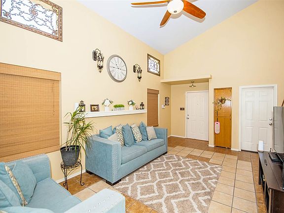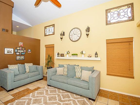 Beautiful 3 bedroom 2+1/2 bath, two story condo for sale in Rancho Del Oro @ Mesa Del Sol 1 block from golf course. Master suite dwnstrs, 2 bedrooms & full bath upstrs & 1/2 bath dwnstrs. Tile & laminate flooring throughout, exc stairs. Large fully fenced & landscaped backyard with huge covered patio & fruit trees (front & back maintained by HOA!). AC installed 2013. Community pool 1/2 block away. New Samsung washer & dryer included. Fridge & security cameras too! Roof work done in 2018. Dishwasher 2018.