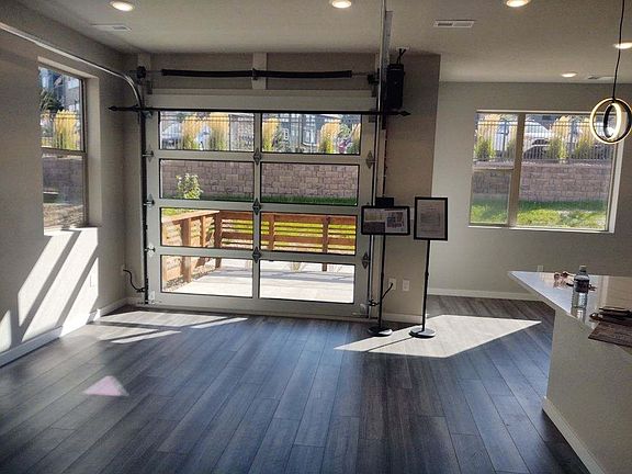NEWLY CONSTRUCTED STUNNING CUSTOM TOWNHOME IN ARVADA- Over 1760 Sq Ft of space in this custom designed 3 X 2.5 corner townhome with 2 car attached garage. Upgrades Galore! (High end finishes, Custom light fixture package, Two-tone paint throughout, Electric Fireplace with tile surround, tech desk/ built in home office) Bring the fresh air of Colorado in with your unique full view glass roll up door leading out to an oversized patio overlooking a tree lined street. This patio is the largest on the community- approx. 13 ft deep and over 12 ft wide! Watch the game, entertain friends with this one of a kind space!