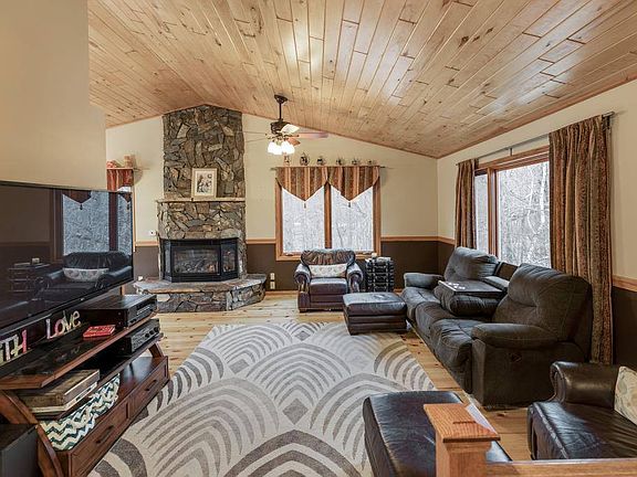Amazing location for this updated and spacious 5BR / 2BA Situated on a beautiful 2.5 acre lot that meets up with the Paul Bunyan Trail. Large foyer entry with double closets, Stainless steel appliances, vaulted living room with gas stone fireplace. hardwood floors, pine vaulted ceilings, fully finished basement with family room, huge storage area. Heated attached garage with additional storage space front porch with deck, 2nd deck overlooking backyard, storage shed, much more. Schedule a private tour today!