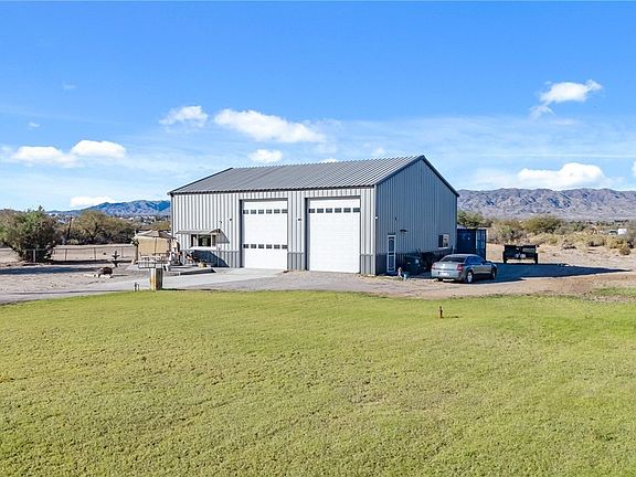 Experience distinctive desert living with this remarkable 2,000 sqft barndominium in Mohave Valley, Arizona. This property features a thoughtfully designed 640 sqft one-bedroom, one-bathroom living area with a storage loft, along with an expansive 1,360 sqft RV garage. Set on 1.04 fully fenced acres with an electric gate, it offers three full RV hookups, ample parking, and a Conex storage box. With city water connected to the home and a dedicated well for yard irrigation, this property is perfect for low-maintenance outdoor living. Enjoy easy access to the Colorado River for boating and fishing, with Lake Mohave, Laughlin s casinos, and Las Vegas all within a short drive.