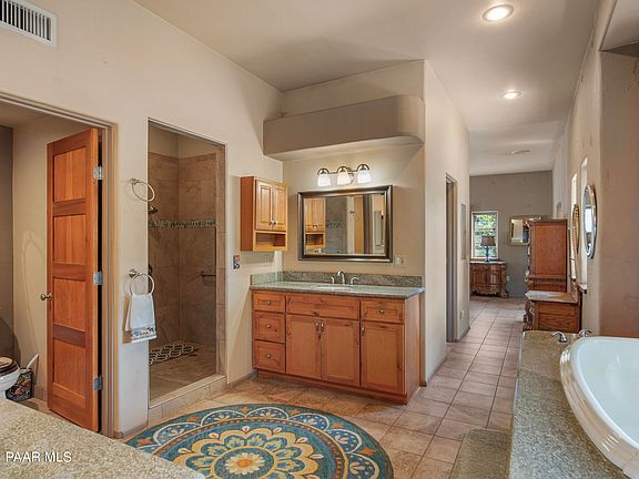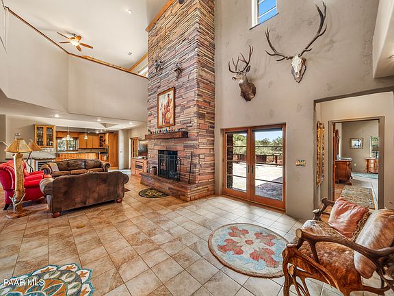 Welcome to your dream horse training facility!! Positioned on 12 sprawling acres of picturesque landscape in Mayer, AZ. This exceptional property combines western life with luxury living! A grand 4,666 square foot home features 3 spacious bedrooms and a versatile loft. Enjoy the convenience of a dedicated laundry room and a well-appointed office. The two master bathrooms offer opulent amenities, including tile finishes, a walk-in shower, a classic clawfoot tub, and a soothing jacuzzi tub. The expansive kitchen boasts upgraded appliances, granite countertops, and ample space for culinary creativity. The great room is a showstopper with its floor-to-ceiling rock fireplace, creating a warm and inviting atmosphere. The property includes a 4,000 square foot horse barn with 10 stalls, a wash